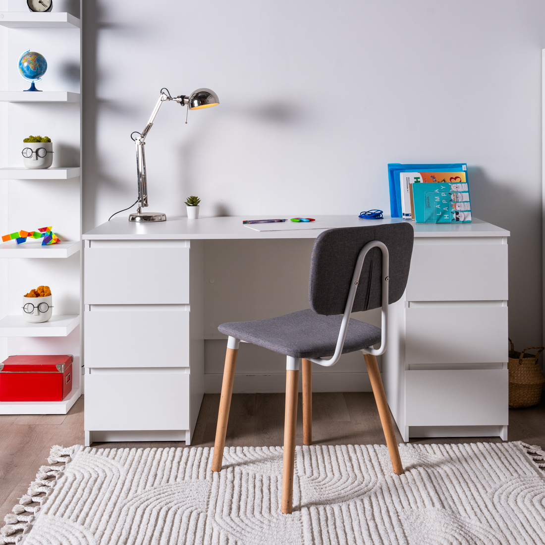 Стол КАСТОР письменный двухтумбовый с шестью ящиками, цвет белый