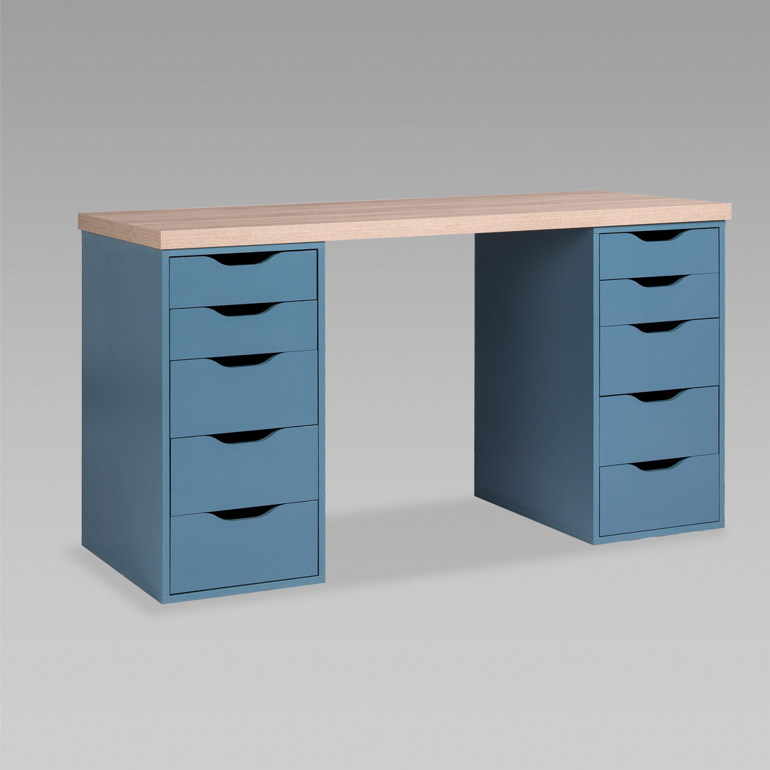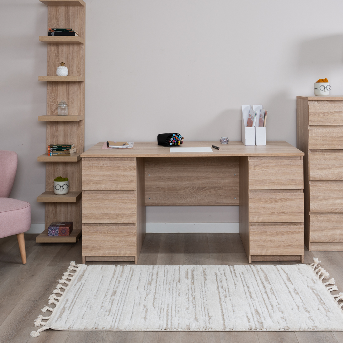 Стол КАСТОР письменный двухтумбовый с шестью ящиками, цвет Дуб Сонома
