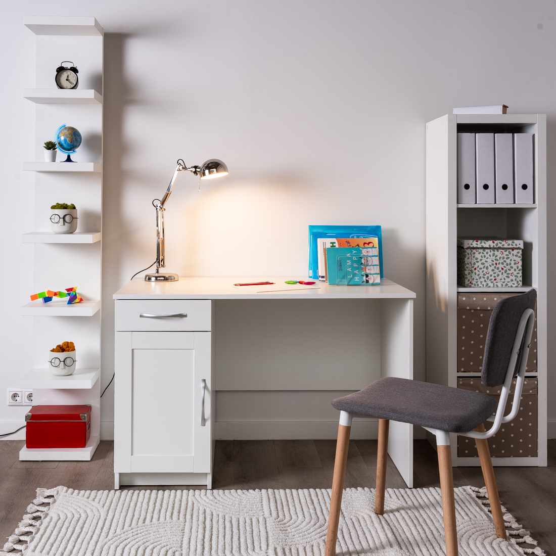 Стол КАСТОР письменный с одной тумбой и одним ящиком, цвет белый