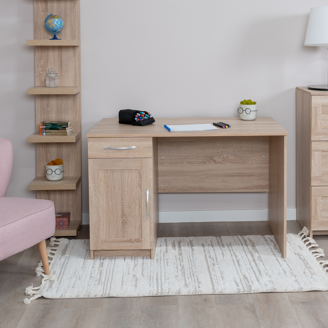 Стол КАСТОР письменный с одной тумбой и одним ящиком, цвет Дуб Сонома