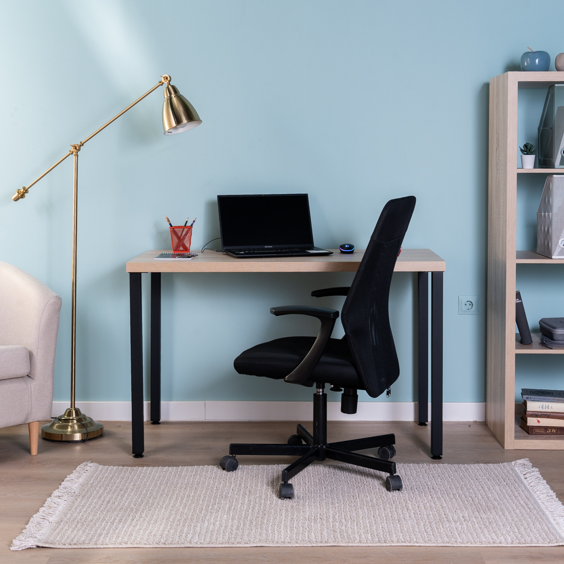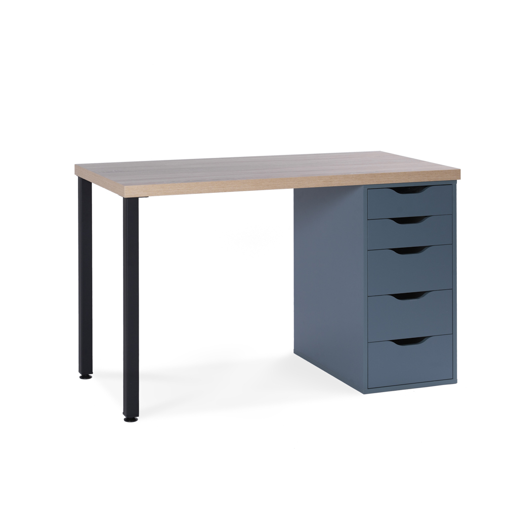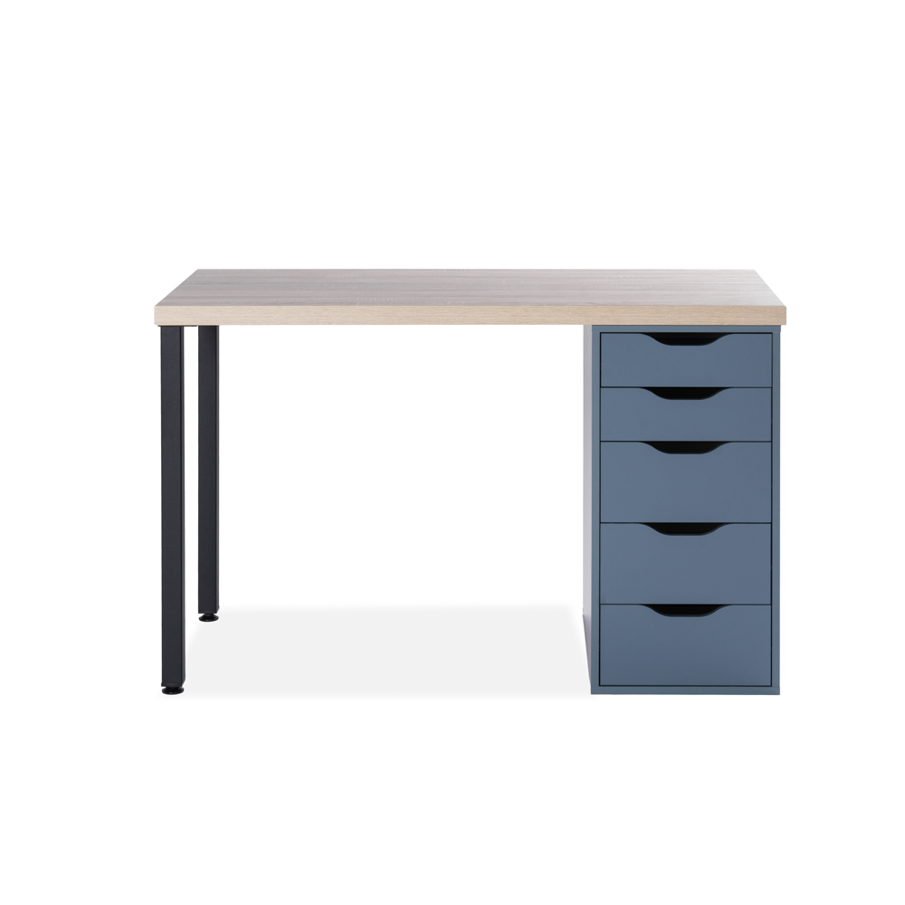 S01378 Ингар 1/5Т стол письменный 120x75x55, дуб беленый/серо-бирюзовый/черный