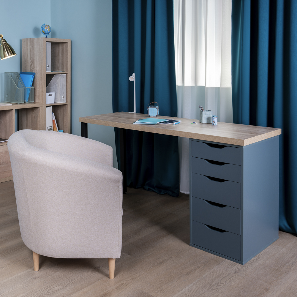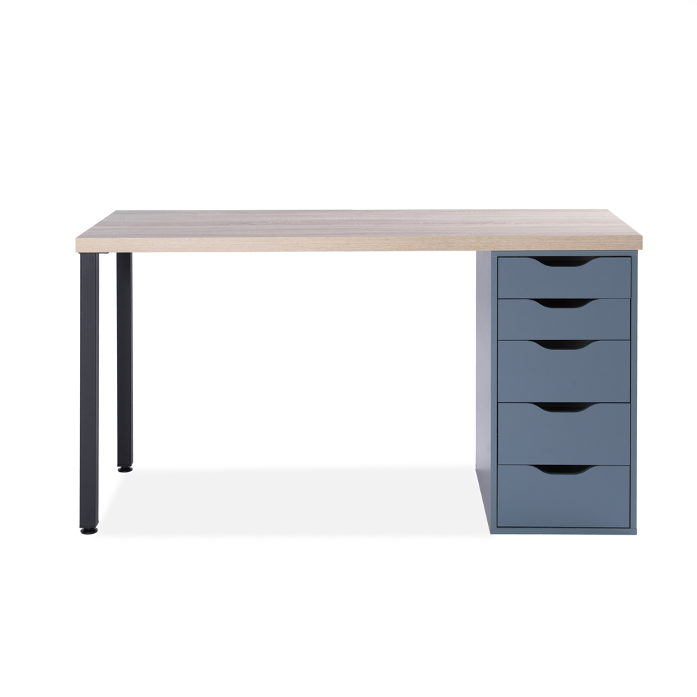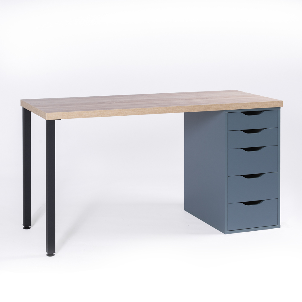 S01392 Ингар 2/5Т стол письменный 140x75x55, дуб беленый/серо-бирюзовый/черный