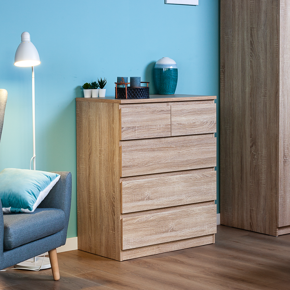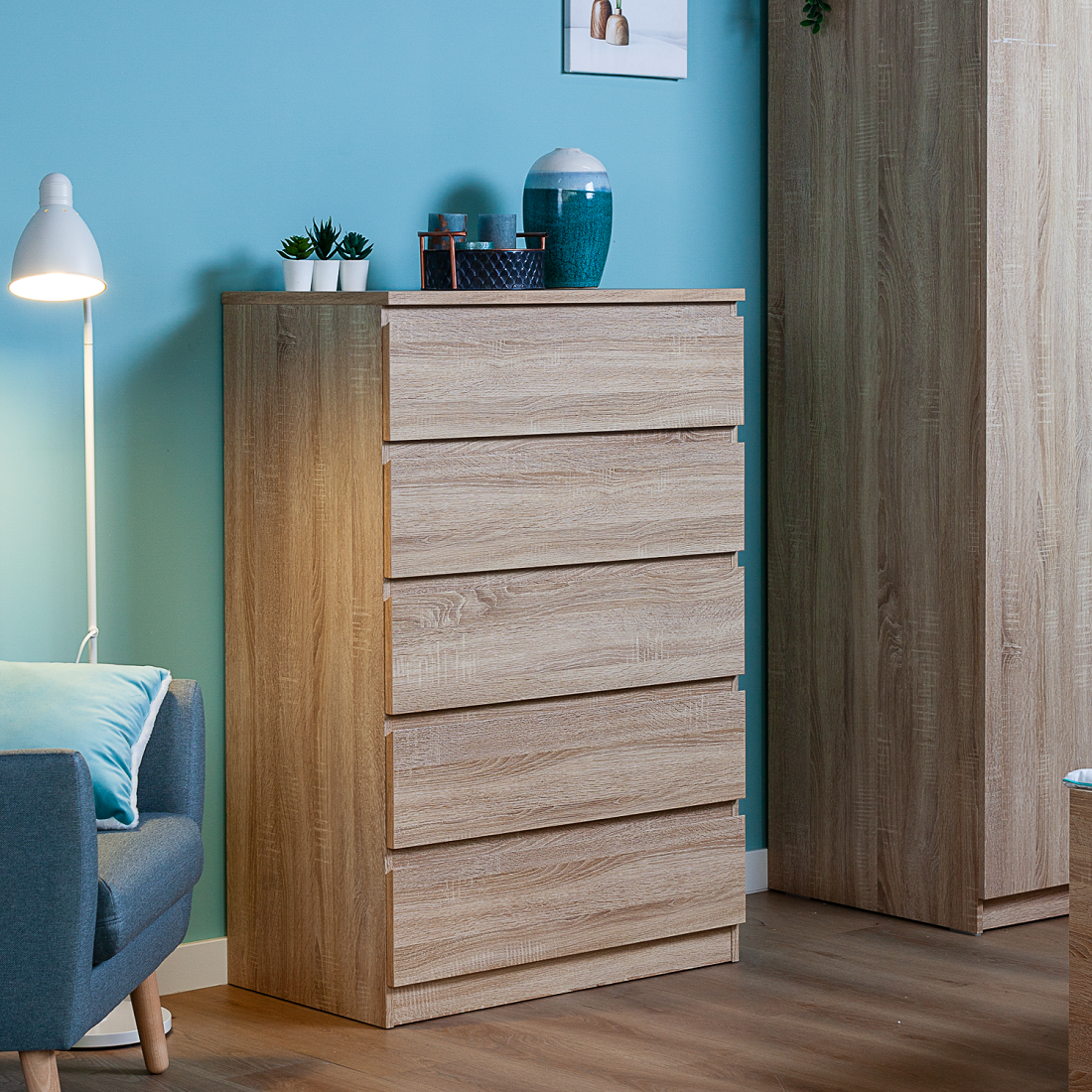 Комод МАЛЬТА высокий с пятью одинаковыми выдвижными ящиками, цвет Дуб Сонома