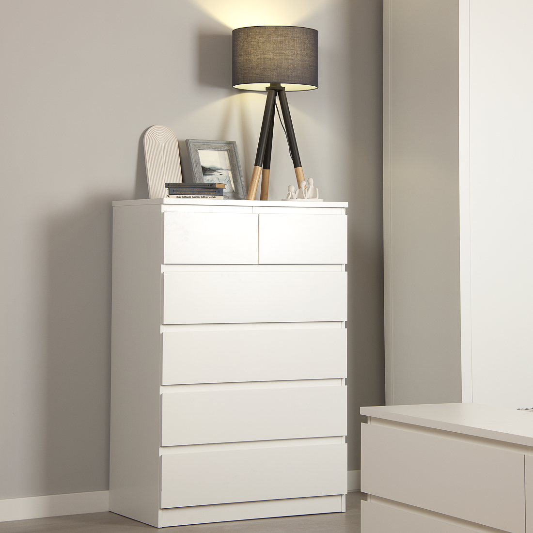 Комод МАЛЬТА высокий с шестью выдвижными ящиками, цвет белый
