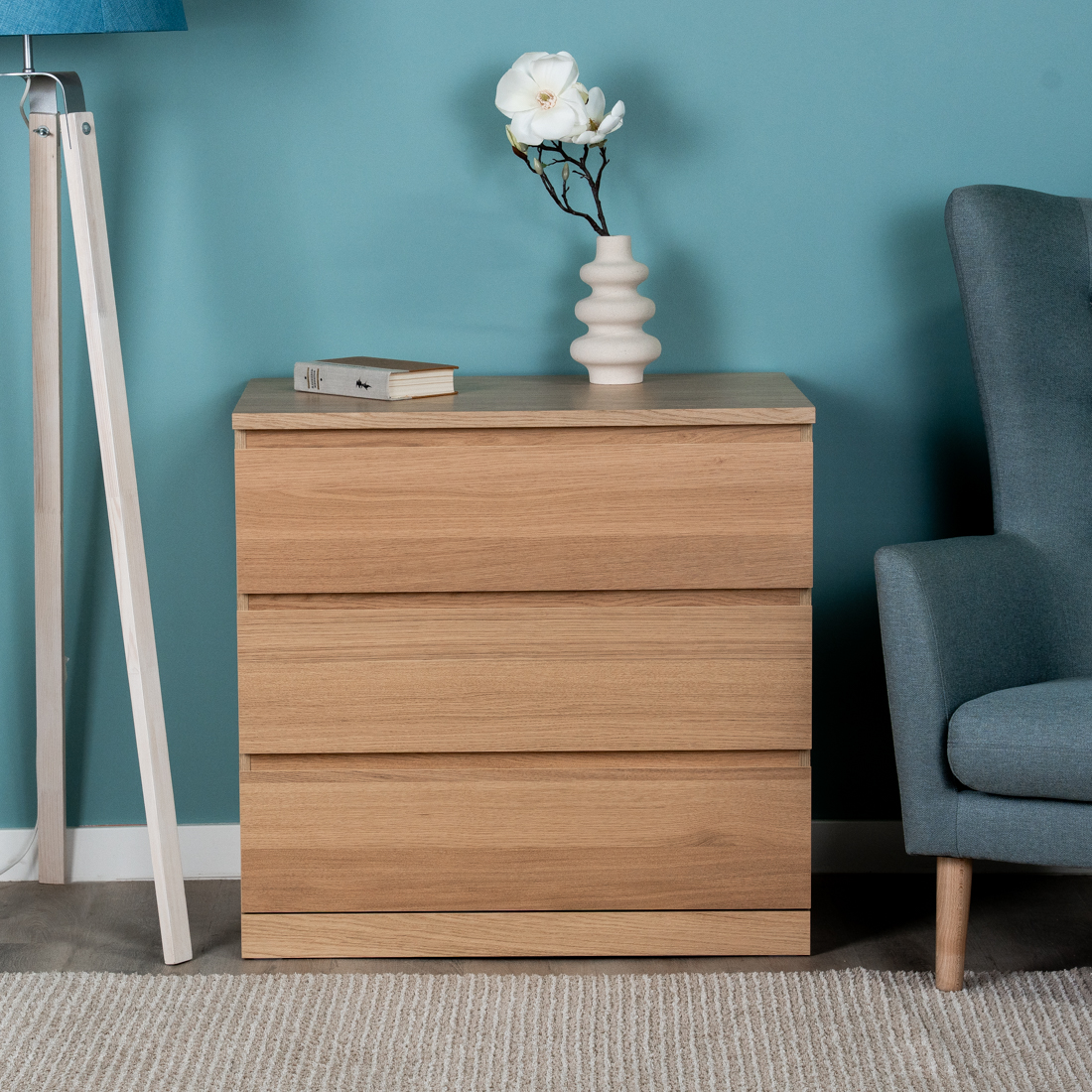 Комод Варма 3 с тремя выдвижными ящиками, цвет дуб белёный