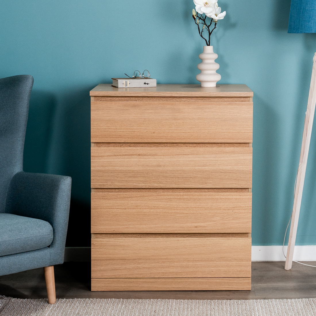 Комод Варма 4 с четырьмя выдвижными ящиками, цвет дуб белёный