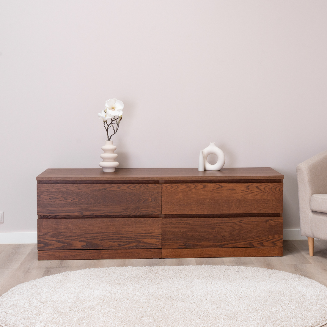 Комод Варма 4 с четырьмя выдвижными ящиками, цвет ясень черный
