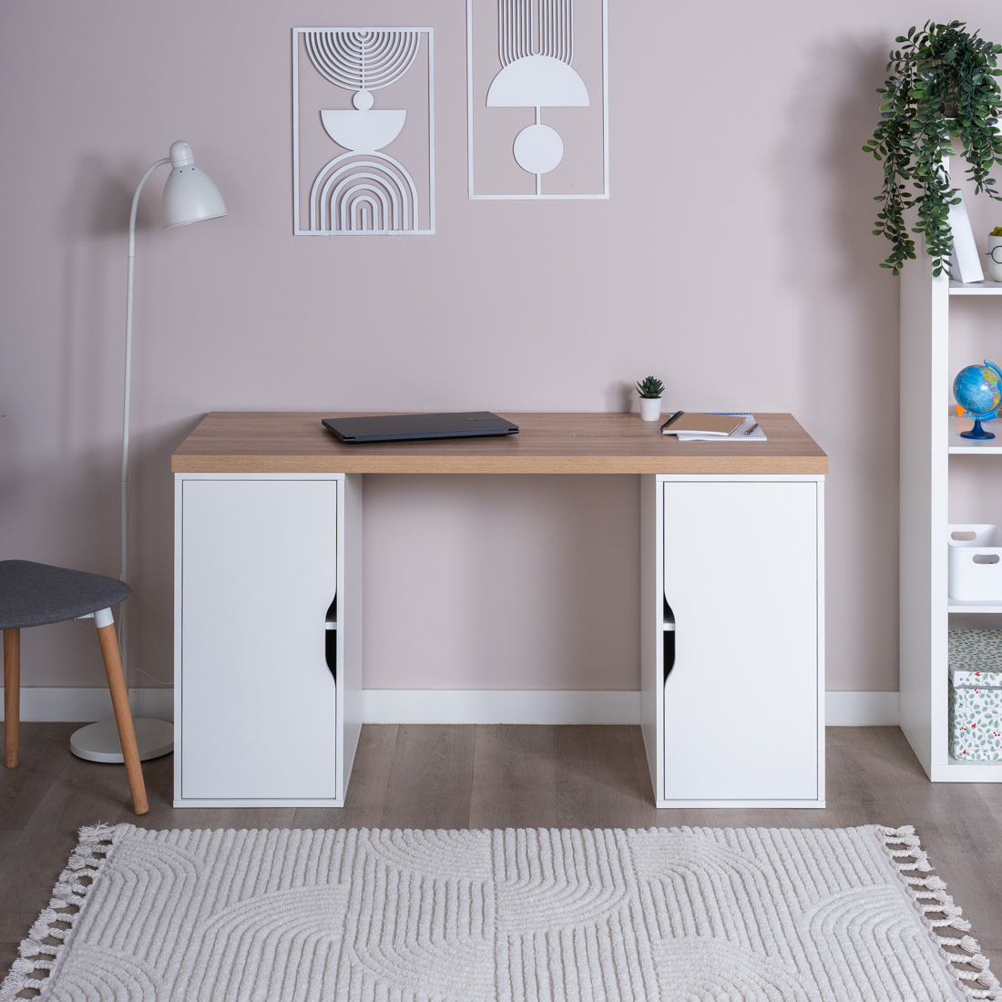 S01576 ИНГАР 2/ДВ/ДВ стол письменный 140x75x55, дуб беленый/белый