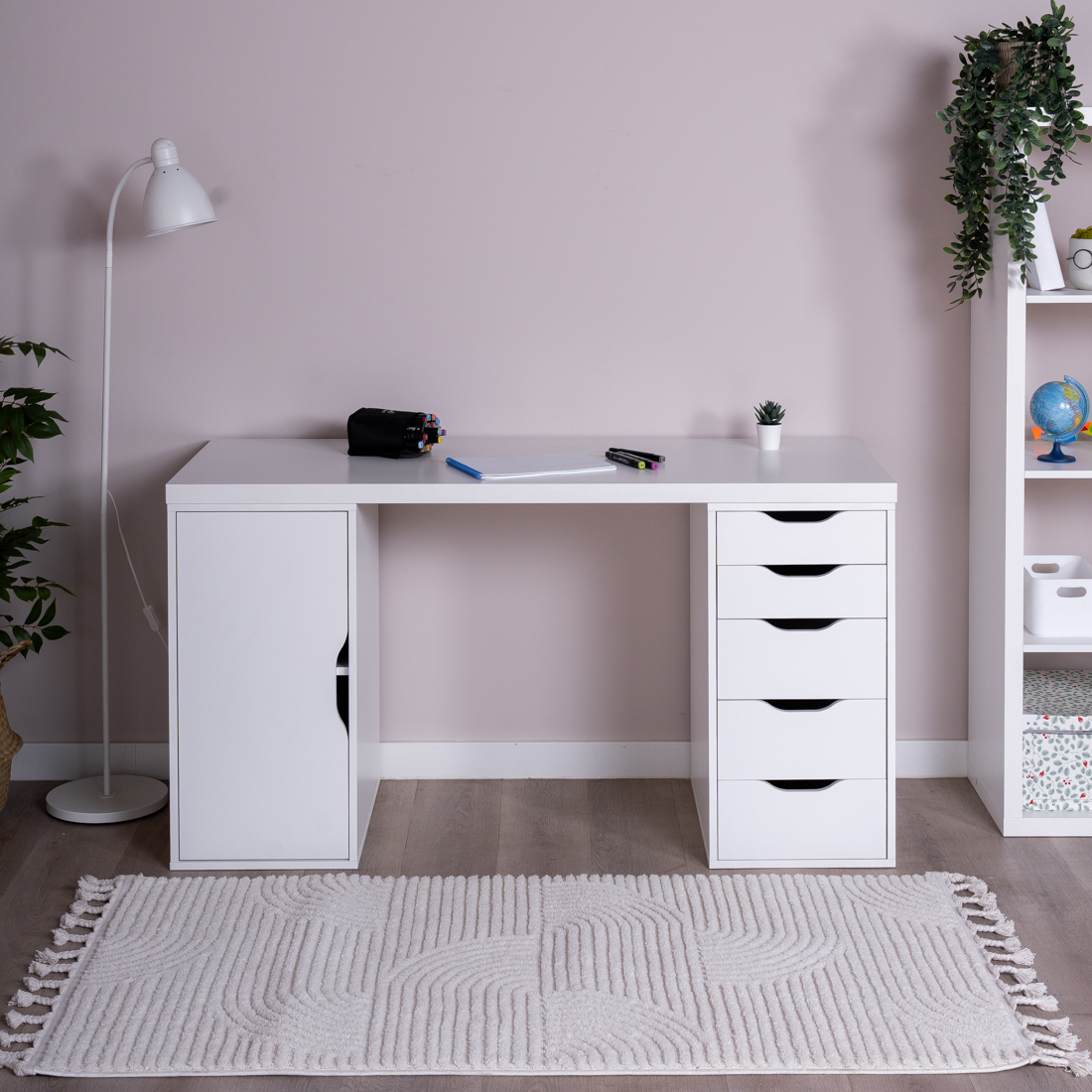S01590 ИНГАР 2/5/ДВ стол письменный 140x75x55, белый