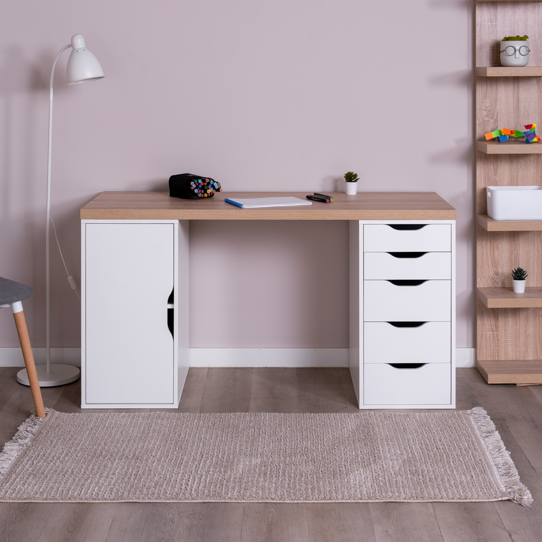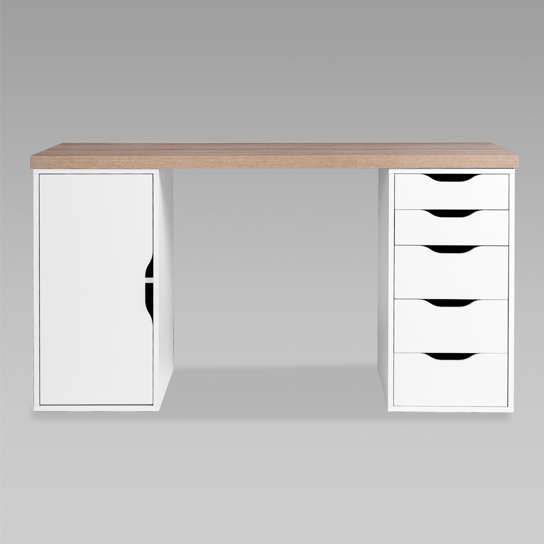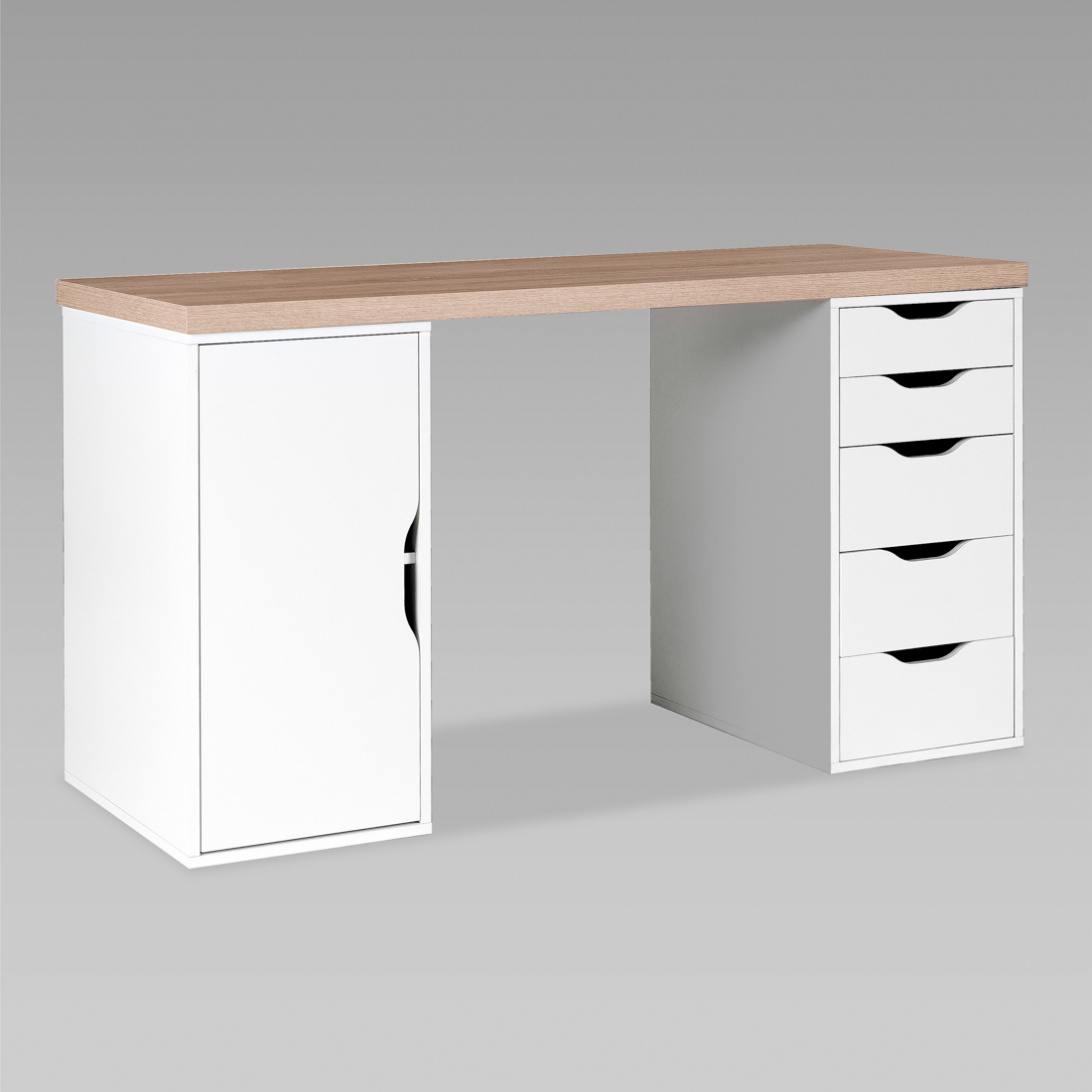 S01606 ИНГАР 2/5/ДВ стол письменный 140x75x55, дуб беленый/белый