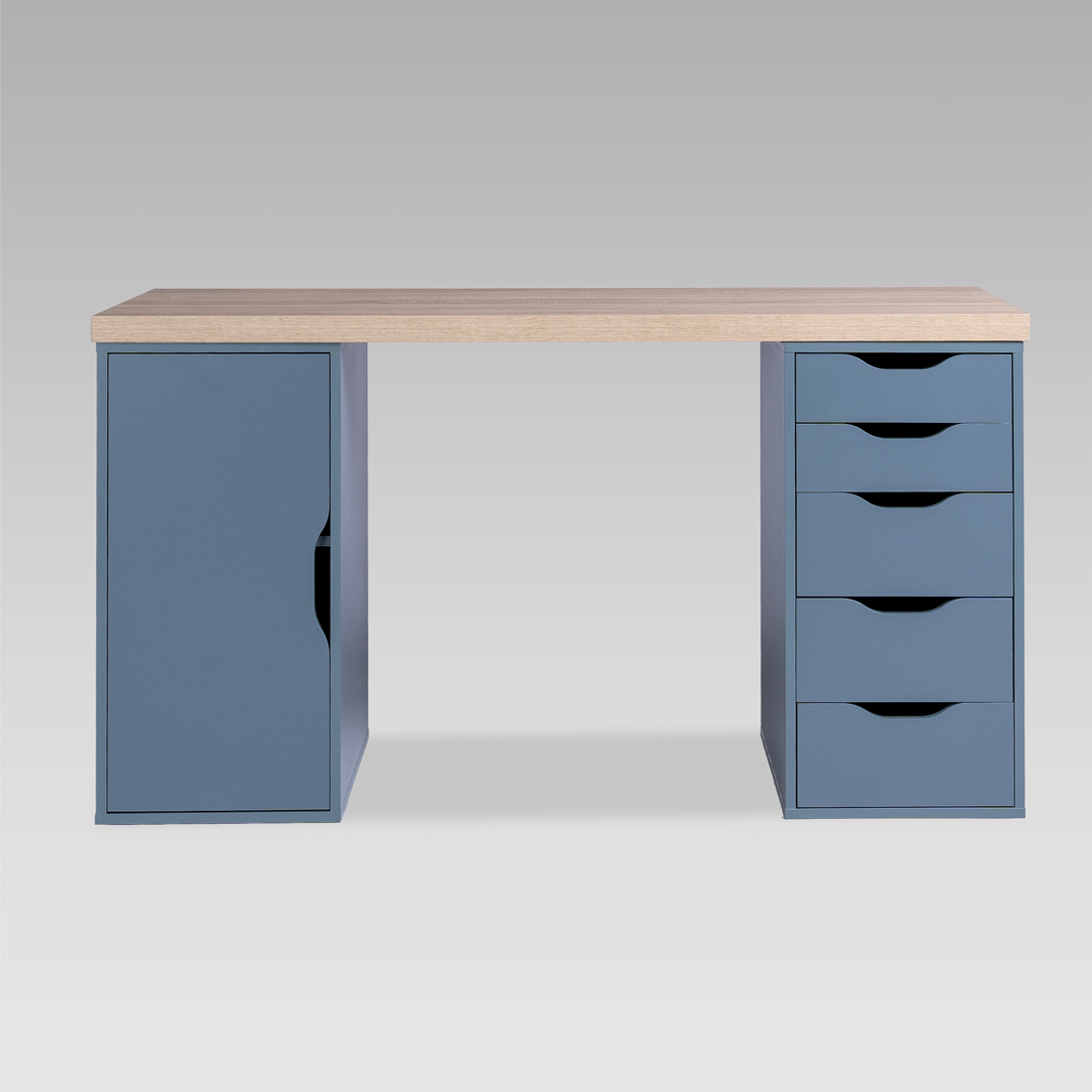 S01613 ИНГАР 2/5/ДВ стол письменный 140x75x55, дуб беленый/серо-бирюзовый